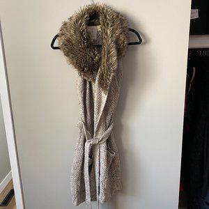 Comfy cozy vest. Comes with tie up waist, or you can wear open. Pockets on front.