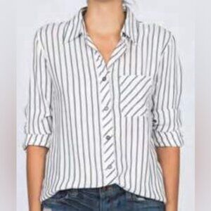 Anthropologie Ash and Ember Boyfriend Button Down Shirt Striped Long Sleeve XS