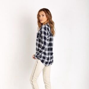 Anthropologie Ash and Ember Button Down Front Shirt Flannel Plaid Black Size S