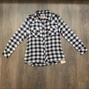 Anthropologie Ash and Ember Button Down Front Shirt Flannel Plaid Black Size S