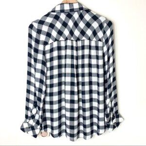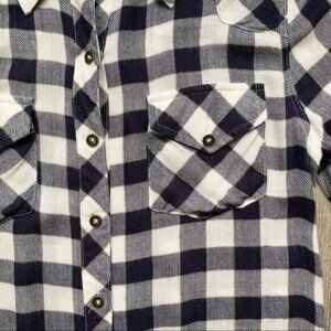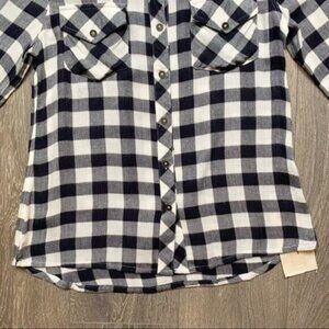 Anthropologie Ash and Ember Button Down Front Shirt Flannel Plaid Black Size S