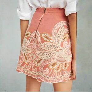 Anthropologie Beaded Mini Skirt 4 Pink Cotton Embroidered Boho Scallop Hem