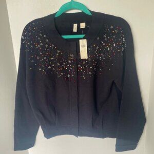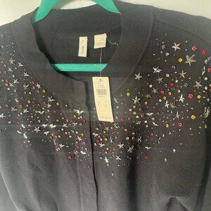 Anthropologie Beaded Stars Cardigan Sweater Womens Small Black Crop Snap Front