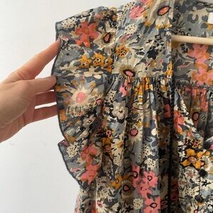 Anthropologie Bishop + Young Nadia Blouse Flutter Sleeve Top Floral Small S