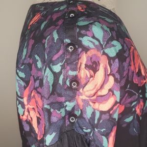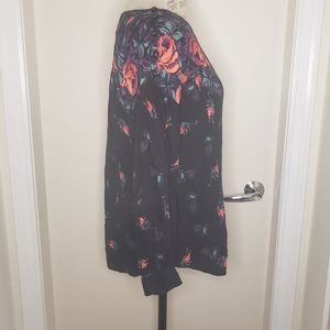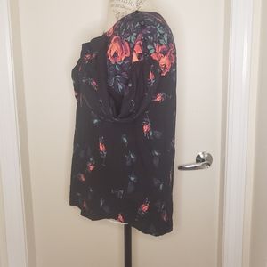 Elevate your wardrobe with this stunning black floral top from Anthropologie. Featuring vibrant pink and green floral patterns, this top is perfect for any occasion. Enjoy the blend of style and comfort with this elegant piece.