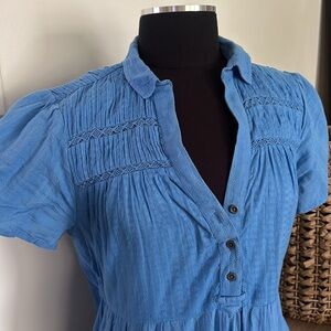 Anthropologie Blue Georgina Tiered Mini Dress Shirt Large
