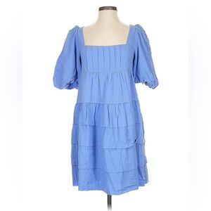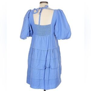 This casual blue sundress from Anthropologie features a charming square neckline and short puff sleeves, perfect for a relaxed day out. The dress is designed with a tiered midi length, offering a flowy and comfortable fit. Its light and airy fabric make it an ideal choice for warm weather.