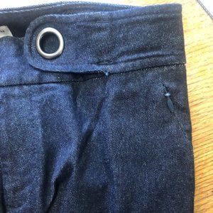 These jeans are in great shape, only worn a couple of times. The closure on these jeans is hook and loop with a button. The tie is just a decorative closure.