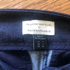 Anthropologie Blue The Essential Tie Waist Crop Flare Denim Jeans.