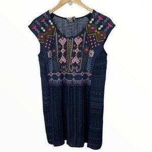 Anthropologie Bohemian Embroidered Tunic One September Size Small Blue Boho Top