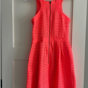Anthropologie Bright Coral Crochet Detail Fit and Flare Dress | Size 0
