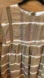 Chic brown dress with cream stripes. Features lace detailing on sleeves. Perfect for casual outings.