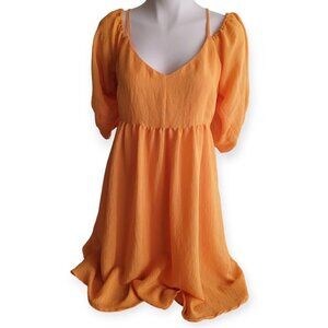 Anthropologie Carina Dress offers a chic, vibrant mango hue with stylish cold shoulders. Made from a rayon/polyester blend, this dress features a zipper back and bubble sleeves. Perfect for vacations, and for spring and summer occasions.