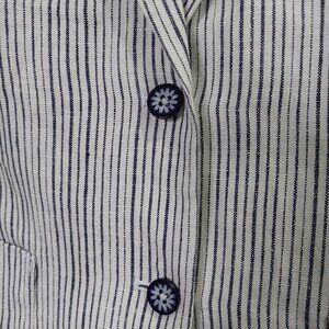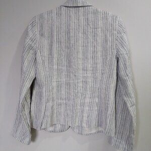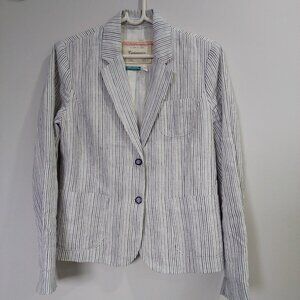 Anthropologie Cartonnier 100% linen Navy White Beachy Pin Stripe blazer, Sz 6