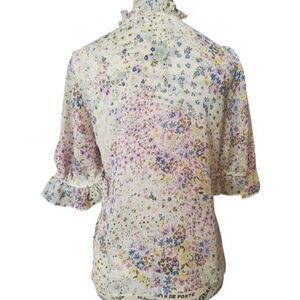 NWOT Anthropologie CeCe Floral Sheer Ruffle-Collar Short-Sleeve Blouse. Size XS.