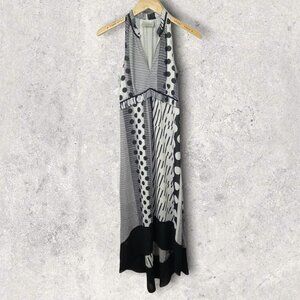 Anthropologie Channeled Polka Dot Silky Striped Maxi Dress Size 0 Bohemian Boho