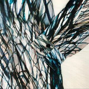 Anthropologie Charlie Jade Blouse Silk Pattern Open Back cut out long sleeve M