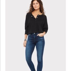 Anthropologie Chaser Rib Henley Snap Front Black Top