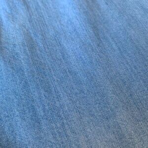 Made of soft light tencel, the denim-like fabric is cuffed at the sleeves. Fabric has a light to dark ombré effect.