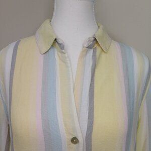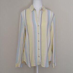 Anthropologie Cloth & Stone Linen Blend Striped Button Down Blouse Size Small