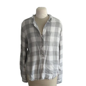 Anthropologie Cloth & Stone Plaid Fringe Button Down