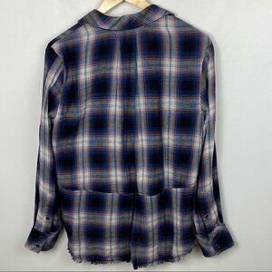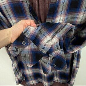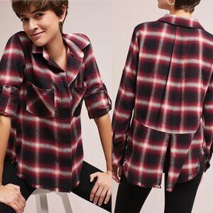Anthropologie Cloth Stone Split Back Plaid Shirt Size Medium Flannel Bohemian M