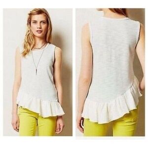 Anthro Clu + Willoughby Asymmetrical Caloundra Ruffle Peplum Top. Light blue tank which transitions into an asymmetrical white ruffle bottom.