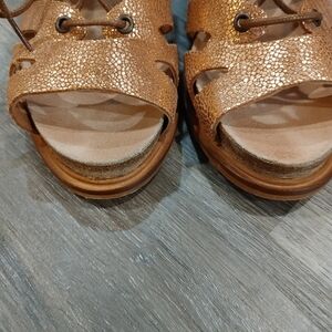Anthropologie Coqueterra rose gold Gladiator heels size 36
