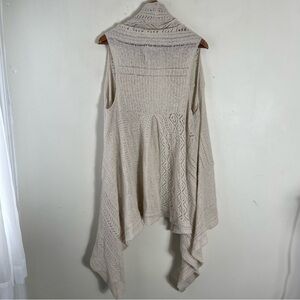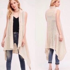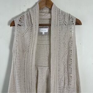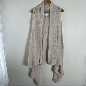 Elegant sleeveless cardigan. Intricate knit design. Flowy and lightweight. Perfect for layering.