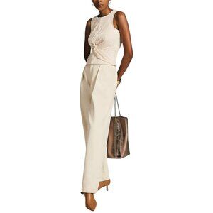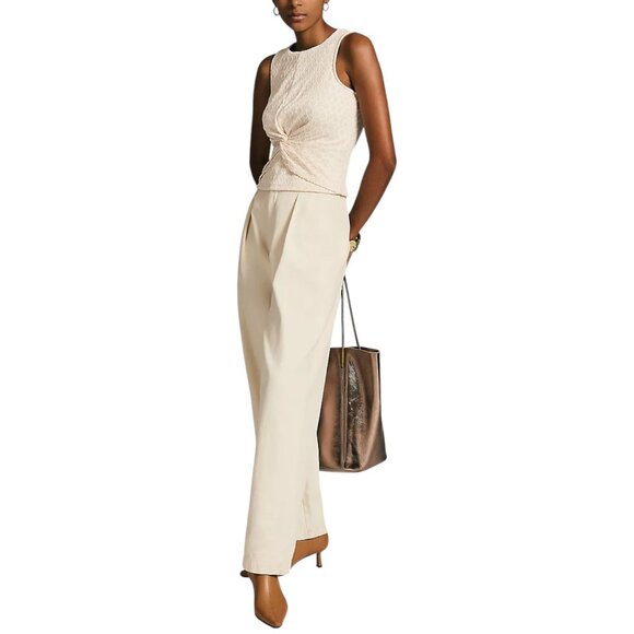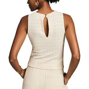 Anthropologie Cream Sleeveless Twist Front Jacquard Cropped Top Sz S