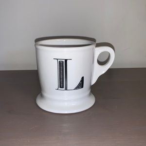 EUC Anthropologie cream and black ceramic letter L monogram mug.