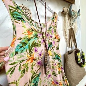 Anthropologie Cupio boho tunic floral tank w resort tropical vacay vibe