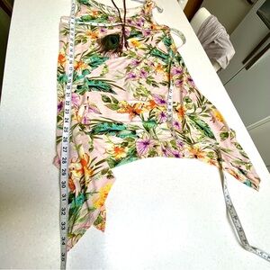 Anthropologie Cupio boho tunic floral tank w resort vacay vibe ✨ Soo lovely in this floral print and asymmetrical trendy style in longer length barely used w minimal wear