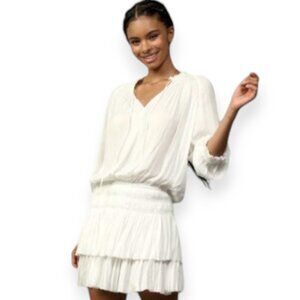 Anthropologie Current Air Aurelie Pleated drop waist white Mini Dress size small