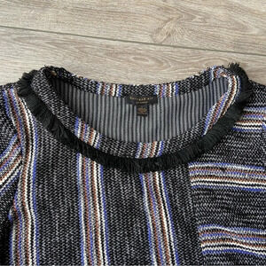 Anthropologie Current Air Black Tweed Stripe Fringe Top