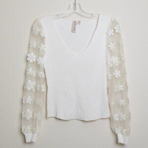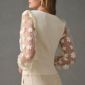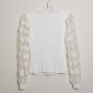 Anthropologie DOLAN Sheer Sleeve Appliqué Sweater Floral Fairy Whimsy Ivory