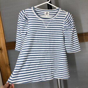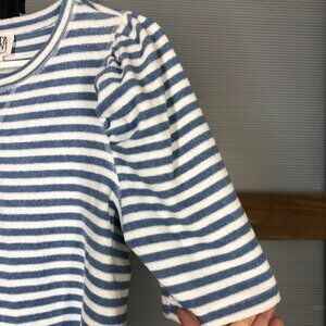 Anthropologie DRA Blue White Stripe Terry Short Sleeve Puff Sleeves Sz S