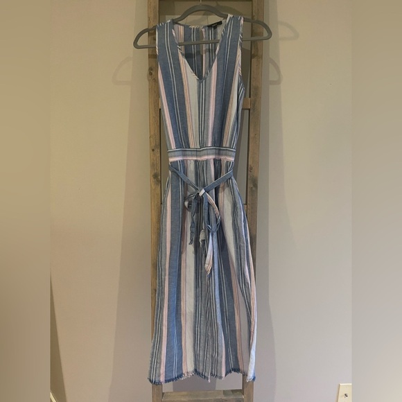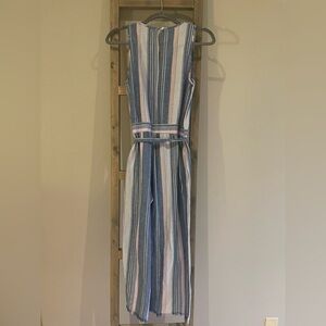 Anthropologie DREW Striped Wide Leg Jumpsuit in Multi Blue Stripe