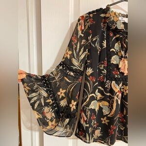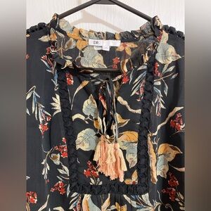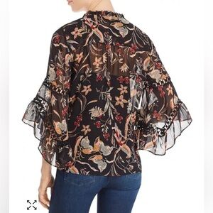 Anthropologie DR2 Daniel Rainn Boho 3/4 High Low Bell-Sleeve Crochet Tassel Floral Flowy Lightweight Peasant Blouse
