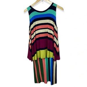 Anthropologie Davina Dress Rainbow Stripe Layered Rainbow Size Small Bohemian S