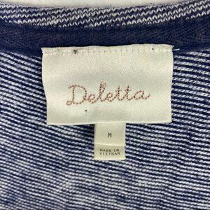 Anthropologie Deletta Pathed Seams Swing Bob Grey Top in Women's Size Medium. Round neckline. 3/4 sleeves. Heathered blue / grey. 100% cotton. Heavyweight material. Very good pre-loved condition. No visible flaws.