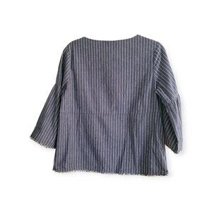 Elevate your look with the Anthropologie Dolan Left Coast bell-sleeve blouse, featuring a chic charcoal stripe design. Crafted from high-quality cotton with slight stretch for comfort.