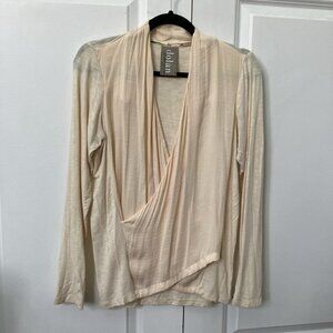 Anthropologie Dolan Left Coast Crossroads Faux Wrap Blouse Womens S Neutral Minimalist Contemporary Made in USA