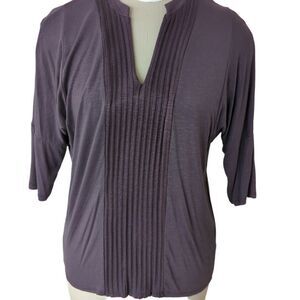This is a purple stretch jersey dolman sleeve top with a pleated front panel by Anthropologie brand Dolan Left Coast.