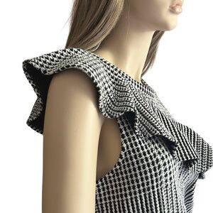Anthropologie Dolan Ruffled Asymmetrical Houndstooth Top Blouse Shirt Tank