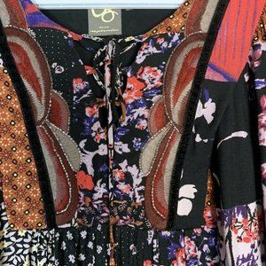 Anthropologie Dress One September Arcata Boho Patchwork Multicolor Shift Rayon