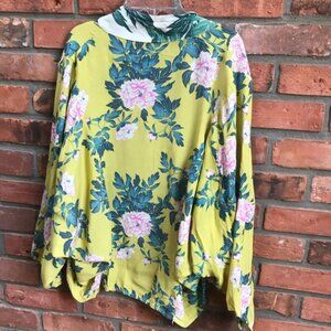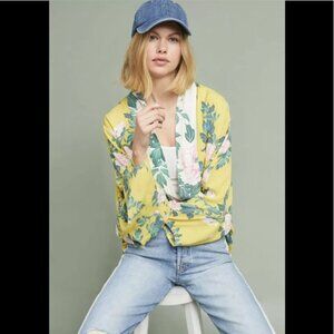 Anthropologie ELMA Floral Kimono Open Boho Cardigan Top Jacket Yellow Lightweight