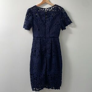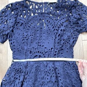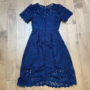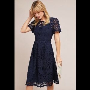 Anthropologie ERI + ALI Lattice Lace Navy Blue Fit N’ Flare Dress shortsleeve XS