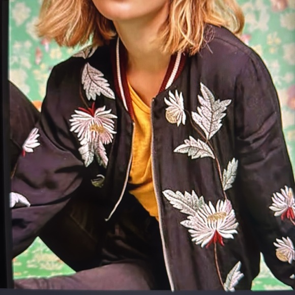 Anthropologie Elevenses Black Floral Embroidered Solstice Bomber Jacket