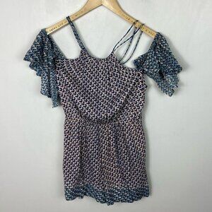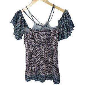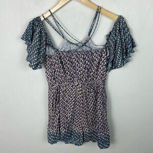 Anthropologie Elevenses Madalenna Open Shoulder Ruffle Romper Size XS Bohemian